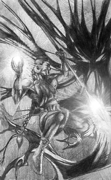 A Kn'Yani fighting the Formless Spawn of Tsathoqqua.